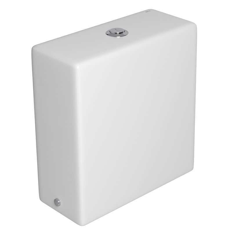 Caixa Acoplada Deca com Acionamento Duo para Bacias Quadratta Branco e Cromado Caixa Acoplada Deca com Acionamento Duo para Bacias Quadratta Branco e Cromado